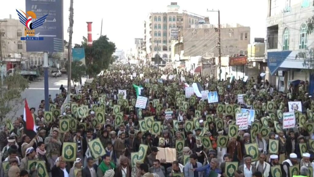 وأكد بيان صادر عن المـ ـسيرات أن ما يتعرض له القـ ـرآن الكريم وهو أقـ ـدس مقـ ـدسات الإسـ ـلام من حملات إسـ ـاءة متكررة وممـ ـنهجة هو جزء من الحـ ـرب اليـ ـهودية الصـ ـهيونية الشاملة التي تسـ ـتهدف الإسـ ـلام والمسـ ـلمين ومقـ ـدساتهم وتتزعـ ـمها أمريـ ـكا وإسـ ـرائيل وبريـ ـطانيا ويتبعهم في ذلك أولياء الشـ ـيطان الـ ـرجيم.